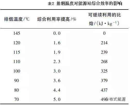 表2 是以天然氣為燃料的分布式能源站系統(tǒng)排煙溫度的變化對(duì)能源站綜合效率影響的計(jì)算數(shù)據(jù)。