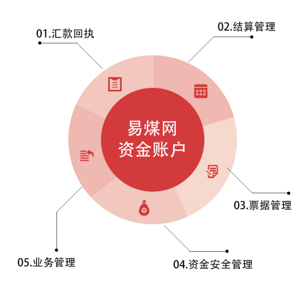 為了使煤炭交易更加容易,易煤網打造了在線附屬賬戶體系,為您在貿易過程中的資金安全保障提供全新的選擇。易煤網在線附屬賬戶就像煤炭行業的“支付寶”一樣,開通易煤網在線附屬賬戶的客戶可以對在線附屬賬戶進行賬戶管理、賬戶查詢、轉賬匯款、理財服務、代發業務、電子回單驗證等操作。
