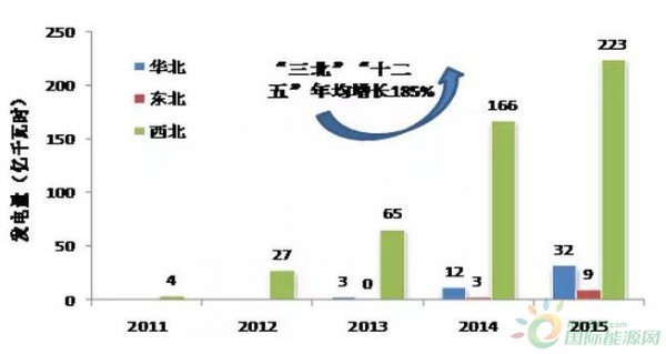 “三北”地區太陽能發電量逐年變化