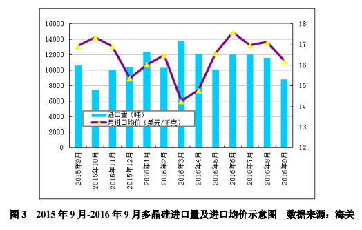 三、自韓國進(jìn)口量大幅下滑,德國進(jìn)口量呈增加趨勢根據(jù)海關(guān)最新數(shù)據(jù)統(tǒng)計,2016年9月份我國多晶硅進(jìn)口量下降至8871噸,環(huán)比降幅為23.8%,同比減少16.3%。2016年截止9月份,累計進(jìn)口量達(dá)到103536噸,同比大幅增加16.4%,前9個月有8個月單月進(jìn)口量在萬噸以上,其中有5個月單月進(jìn)口量都超過1.2萬噸,前三季度月均進(jìn)口量為11504噸。9月份多晶硅海關(guān)進(jìn)口情況主要有以下四個特點:第一,從韓國進(jìn)口量大幅減少。在韓國維持兩年半中國最大多晶硅進(jìn)口來源地之后,于2016年9月份減少至3456噸,占當(dāng)月進(jìn)口總量的39.0%,位居進(jìn)口量第二位,環(huán)比大幅減少38.8%,同比下降30.0%。主要是由于9月份下游需求前所未有的低迷狀態(tài)導(dǎo)致了多晶硅市場價格下跌到歷史低點,國內(nèi)成交量少之又少,海外多晶硅也面臨同樣的問題,其中韓國多晶硅生產(chǎn)企業(yè)由于市場價格低迷成交甚少積壓了部分庫存,因此從韓國進(jìn)口量有所減少。第二,從德國進(jìn)口量呈增加趨勢。9月份從德國進(jìn)口多晶硅量增加至3694噸,占總進(jìn)口量的41.6%,環(huán)比再增加9.7%,比前三季度累計月均進(jìn)口量高出22.9%,躍居進(jìn)口量首位。這可能與瓦克在美國的2萬噸/年多晶硅陸續(xù)出量有關(guān),美國生產(chǎn)的多晶硅難以進(jìn)入中國市場,所以瓦克在德國生產(chǎn)的多晶硅則幾乎全量進(jìn)入中國,其他地區(qū)的市場需求量則從美國出貨。因此海關(guān)數(shù)據(jù)中從德國的進(jìn)口量有明顯增加,且呈逐漸遞增趨勢。