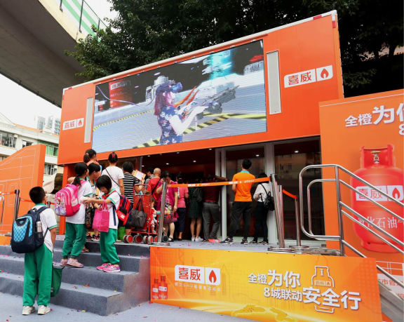 喜威“全橙為你安全行”結(jié)合了最先進(jìn)的極客級(jí)高科技互動(dòng)技術(shù)——MR混合現(xiàn)實(shí),是能源行業(yè)與消費(fèi)者互動(dòng)的首次高科技探索。搭載混合現(xiàn)實(shí)游戲《超級(jí)安全大作戰(zhàn)》的喜威“安全大橙車”,能讓消費(fèi)者瞬間置身于未來(lái)的能源星海中,親身體驗(yàn)極富動(dòng)感的科幻動(dòng)作游戲。車身大屏幕也將同步玩家實(shí)況,讓圍觀的消費(fèi)者可實(shí)時(shí)共享游戲的刺激樂(lè)趣,并掌握安全用氣的要訣。