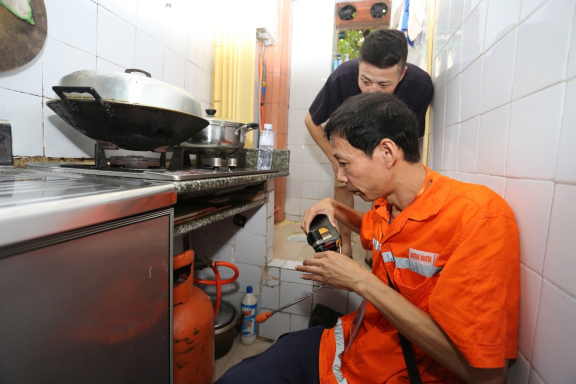 圖為喜威安全技術(shù)工程師免費(fèi)上門為居民進(jìn)行燃?xì)獍踩珯z測(cè)