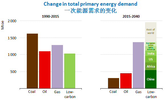 《展望》指出,由可再生能源引領的電力結(jié)構(gòu)轉(zhuǎn)型把全球能演領域關注的焦點轉(zhuǎn)移到了電力市場設計和電力安全,而傳統(tǒng)能源安全的擔憂并沒有消失。在未來25年,世界能源需求將持續(xù)保持增長,但仍將有幾億人缺乏現(xiàn)代能源。在《展望》的主要情形下,到2040年,全球能源需求將增長30%,這意味著所有現(xiàn)代燃料總量的消費將繼續(xù)增長,但是全球總量的增長之下,存在大量不同趨勢以及能源的轉(zhuǎn)型。