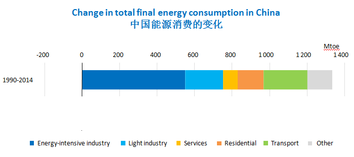 對比過去25年和未來25年的差異,Tim Gould表示,從1990年到2015年,能源需求增加了60%,煤炭無疑是最大的贏家;而未來25年,天然氣可能將成為最大的贏家。他認為,從過去25年和未來25年的對比,可以看到,中國從1990年到2014年能源需求增長主要來源于高耗能行業(yè),比如水泥、鋼鐵;而未來25年,雖然部分高耗能行業(yè)如化工產(chǎn)業(yè)還是會有一些增長,但鋼鐵等行業(yè)會大幅下降,高耗能行業(yè)不再是未來中國經(jīng)濟增長的主要動力,由此帶來的煤炭消費減少將為電力和天然氣的增長提供空間。