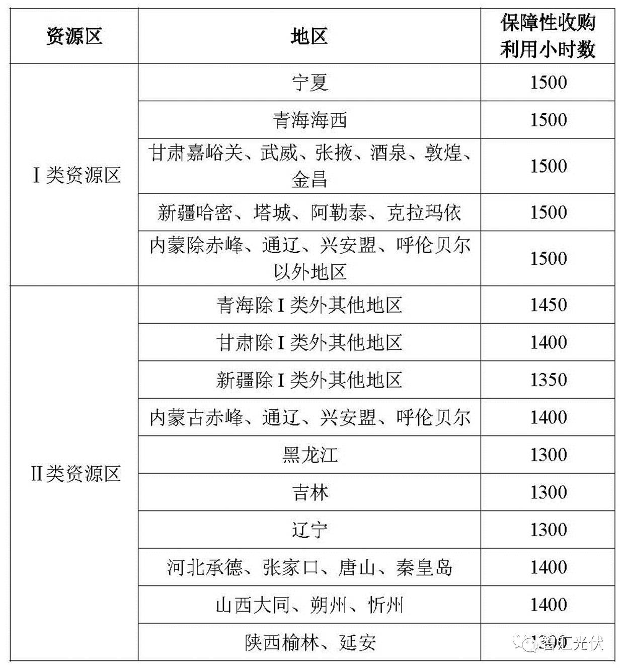 表3:光伏發電重點地區最低保障收購年利用小時數核定表