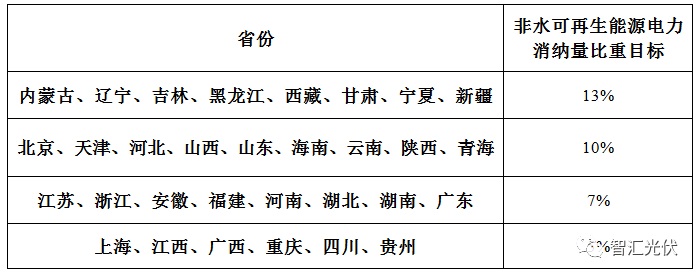 表1:各省的非水可再生能源配額