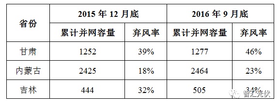 這兩個文件還是為了解決限電和消納!根據公開數據,這三地2015、2016年的風電限電比例如下表(光伏尚未發布)。