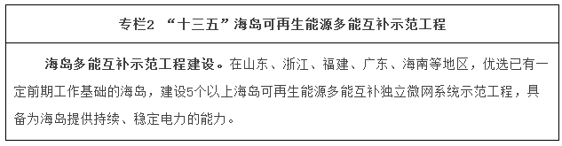 結合“生態島礁”工程,優選5個以上海島,開展海島可再生能源開發利用示范工作,建設多能互補示范電站,結合電站的建設,積累海島可再生能源獨立電力系統運營管理經驗,探索海島可再生能源的開發利用模式,為海島可再生能源的規模化開發打下基礎。