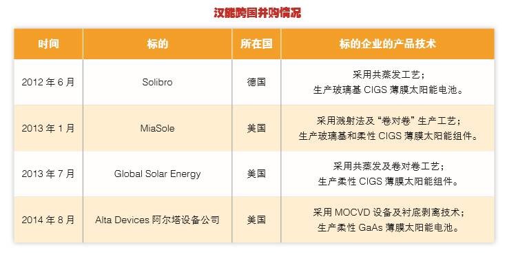漢能在幾次并購中也是大贏家,最終都以較低的價格、盡量小的成本買下了這4家公司的股權。