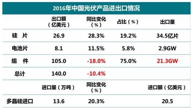 2016年全年光伏產(chǎn)品出口情況