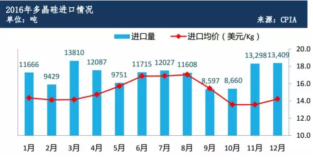 5.多晶硅月平均進(jìn)口量為1.13萬(wàn)噸;