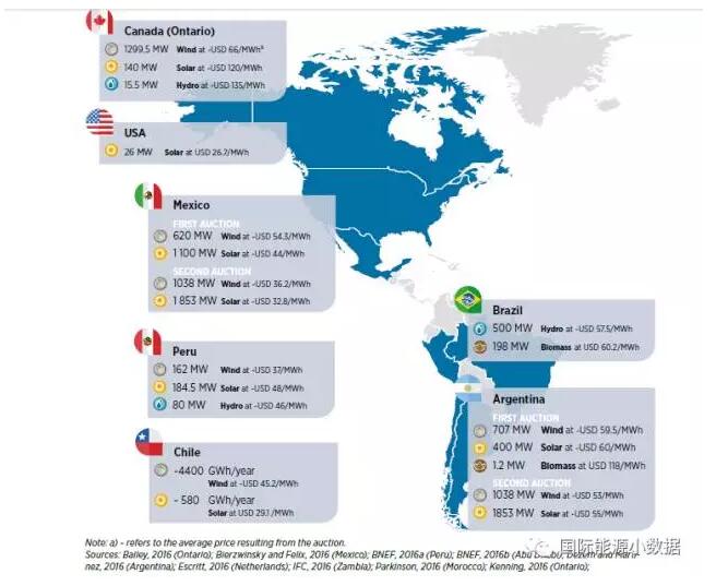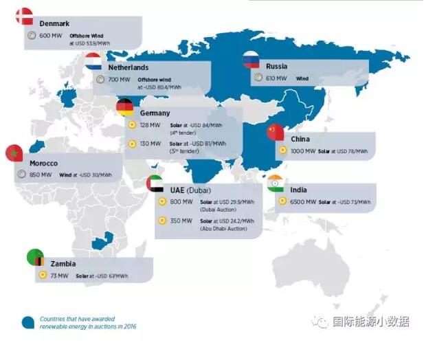國際可再生能源署(IRENA)日前發布報告,盤點2016年各國風電、光伏的最低報價。