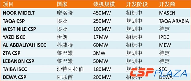 表:中東和北非地區太陽能熱發電項目一覽