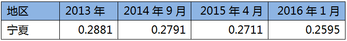 從2014年到2016年,隨著煤炭?jī)r(jià)格的下降,煤電上網(wǎng)標(biāo)桿電價(jià)均有所下調(diào)。以寧夏自治區(qū)為例,其2013-2016年煤電上網(wǎng)標(biāo)桿電價(jià)為: