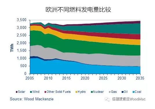 北美的天然氣需求仍在增長,這是由煉鋼等出口行業(yè)驅(qū)動的。但是,歐洲天然氣市場已接近飽和??傮w需求增長的不斷放緩,能源效率的日漸提升,以及來自電力的競爭,將導(dǎo)致天然氣需求增長疲軟。與此同時,煤炭將愈加感受到更嚴(yán)格的環(huán)境立法帶來的壓力。長遠(yuǎn)來看,我們預(yù)計可再生能源成本將進(jìn)一步下降,風(fēng)電和太陽能發(fā)電的盈虧平衡成本在一些市場將低于燃?xì)獍l(fā)電。