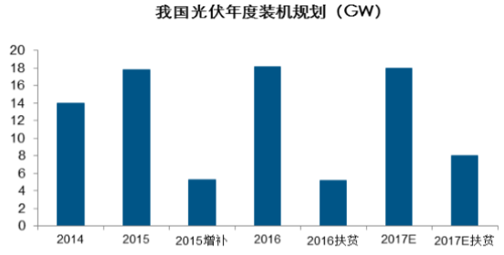 2016 年下發(fā)光伏扶貧規(guī)劃約 4.5GW,2017 年目標(biāo)預(yù)計(jì)在 8GW 左右