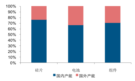 中國(guó)是全球光伏的主要生產(chǎn)國(guó),三大環(huán)節(jié)占比均接近 70%