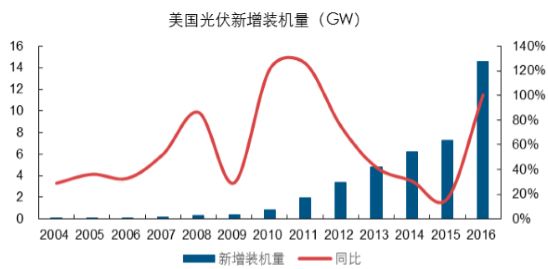 近年來美國(guó)光伏裝機(jī)規(guī)模持續(xù)擴(kuò)張