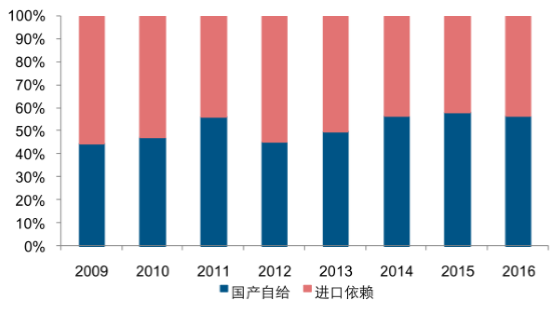 2016 年我國(guó)多晶硅進(jìn)口量占總消費(fèi)量的 40%以上