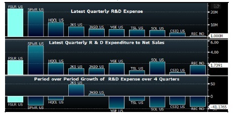 太陽能行業(yè)各家公司的研發(fā)支出