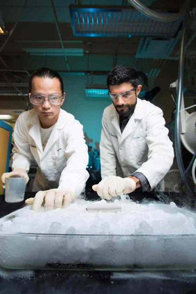 加州圣迭戈大學(xué)研究人員測試液化氣電解質(zhì)的研究人員