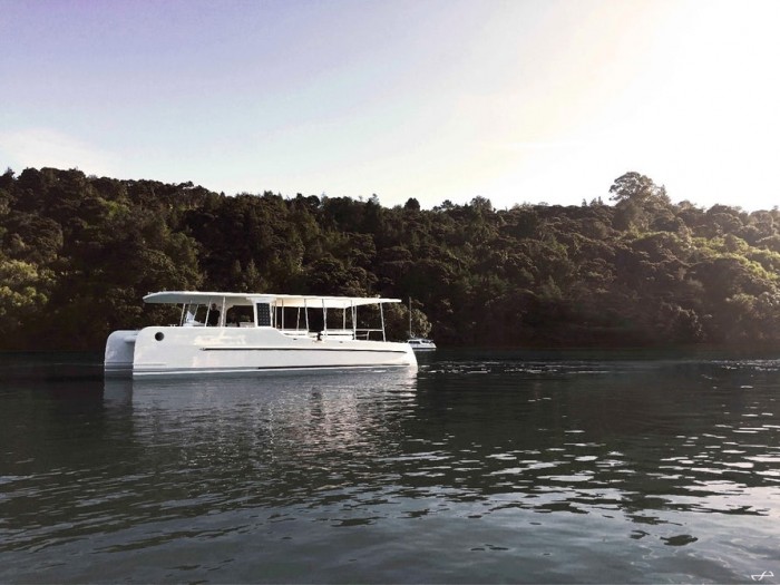 據外媒報道,荷蘭Soel Yachts公司本周在新西蘭推出了一款稱為SoelCat 12的電動雙體船,展示了一種更清潔的水上交通工具。零排放的SoelCat 12能夠運載16名乘客,不需要燃料。而是依靠裝在船頂的8.6KWp太陽能電池陣列提供動力。