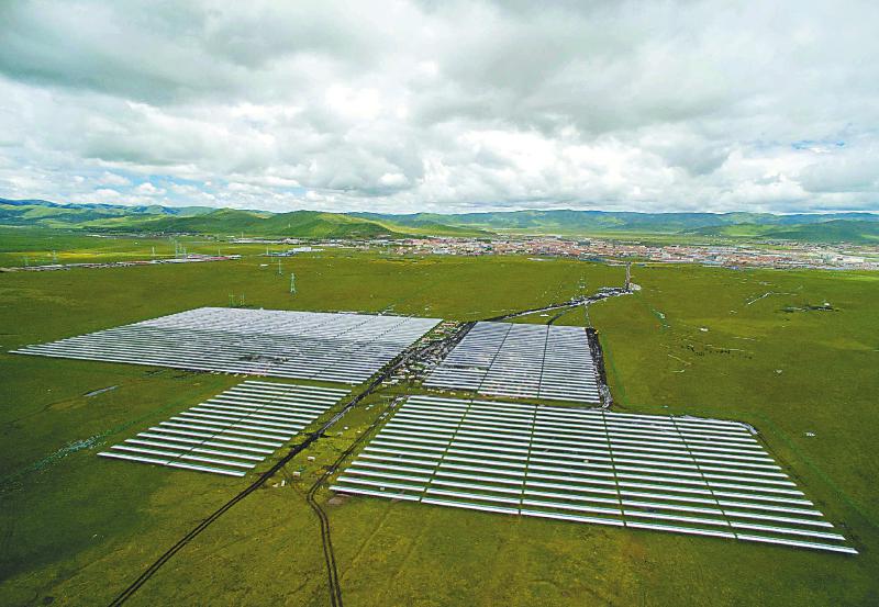 已建成投產的紅原縣花海光伏電站是全球首座高原高效光伏電站,實現了生態環保與清潔能源生產的有機結合。