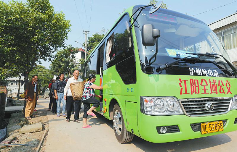 瀘州市江陽區泰安鎮,村民乘坐純電動公交車。