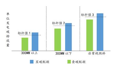 由上圖可知,300兆瓦以上機組的單位發電碳排放量要低于300兆瓦以下機組的碳排放量,但是由于多個標桿值,就會導致部分300兆瓦以上機組去購買300兆瓦以下機組的碳配額,導致資源的錯配。