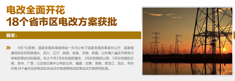 2016年9月7日,國家發改委、國家能源局批復同意河南、新疆、山東、湖北、四川、遼寧、陜西和安徽開展電力體制改革綜合試點。