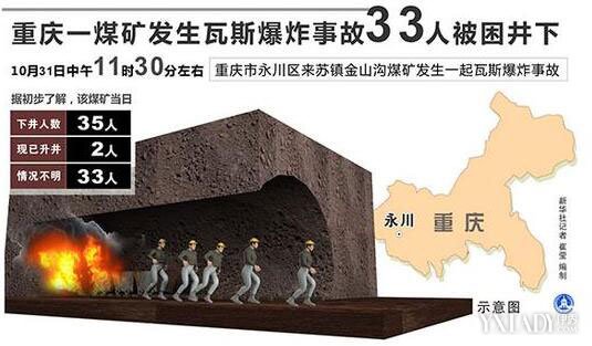 重慶永川煤礦瓦斯爆炸井下33人全部遇難