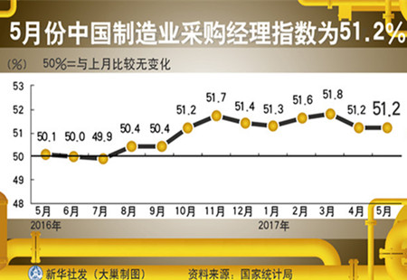 國家統(tǒng)計(jì)局解讀:制造業(yè)PMI保持?jǐn)U張態(tài)勢(shì)5月份,制造業(yè)PMI為51.2%,與上月持平,高于去年同期1.1個(gè)百分點(diǎn),連續(xù)8個(gè)月位于51.0%以上的擴(kuò)張區(qū)間,制造業(yè)繼續(xù)保持平穩(wěn)增長的發(fā)展態(tài)勢(shì)。 [詳細(xì)]