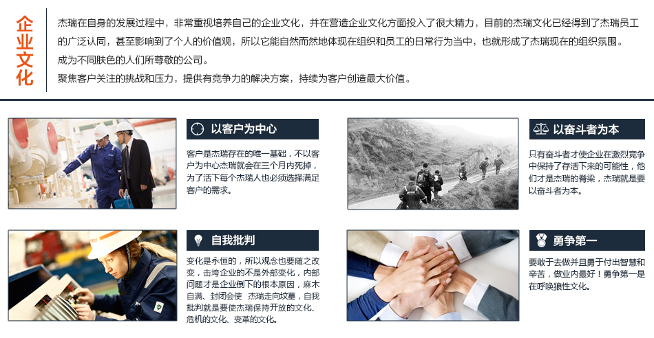 杰瑞集團是專注于油氣、電力和環(huán)保領(lǐng)域的國際化公司。憑借在裝備制造、技術(shù)服務(wù)、工程承包、投資運營等方面的實力,我們?yōu)榭蛻籼峁└咝ъ`活的一體化解決方案,解決客戶所面臨的壓力和挑戰(zhàn)。在全球,我們的業(yè)務(wù)已遍及60余個國家和地區(qū),超過5000名的優(yōu)秀員工,始終秉承“以客戶為中心、以奮斗者為本,自我批判、勇爭第一”的核心價值觀,與客戶和合作伙伴攜手建設(shè)美好世界。