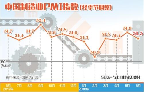 PMI數(shù)據(jù)向好映射中國制造業(yè)穩(wěn)健發(fā)展國家統(tǒng)計局和中國物流與采購聯(lián)合會6月30日發(fā)布的6月份中國采購經(jīng)理指數(shù)(PMI)為51.5%,比上月回落0.4個百分點,仍高于上半年均值0.2個百分點。今年以來,制造業(yè)PMI均在50.0%以上的景氣區(qū)間運行 [詳細]