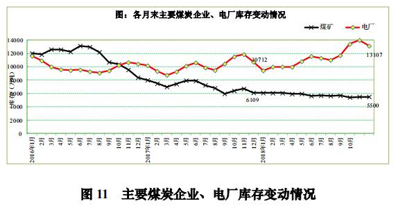 2018 年末,重點煤炭企業存煤 5500 萬噸,同比減少 609 萬噸,下降 10%,處于較低水平;全國統調電廠存煤 1.31 億噸,同比增加 2395 萬噸,增長 22.4%,可用 21 天,存煤由產地向終端用戶轉移。