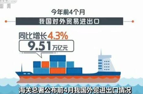 今年前4個月我國外貿進出口增長4.3%據海關統計,今年前4個月,我國貨物貿易進出口總值9.51萬億元人民幣,比去年同期(下同)增長4.3%。其中,出口5.06萬億元,增長5.7%;進口4.45萬億元,增長2.9%;貿易順差6181.7億元,擴大31.8%。 [詳細]