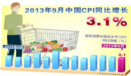 三季度中國經濟運行數據本周將陸續公布,其中9月份全國居民消費價格總水平(CPI)和全國工業生產者出廠價格(PPI)兩大指數今日發布:CPI總水平同比上漲3.1%,比8月份漲幅擴大了0.5個百分點;PPI同比下跌1.3%,... [詳細]