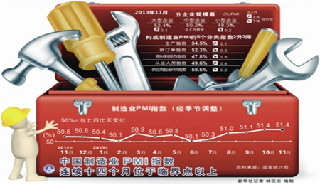 11月中國(guó)制造業(yè)PMI指數(shù)為51.4% 與上月持平中國(guó)物流與采購(gòu)聯(lián)合會(huì)、國(guó)家統(tǒng)計(jì)局服務(wù)業(yè)調(diào)查中心發(fā)布的2013年11月份中國(guó)制造業(yè)采購(gòu)經(jīng)理指數(shù)(PMI)為51.4%,同上月持平。從12個(gè)分項(xiàng)指數(shù)來看,同上月相比,生產(chǎn)指數(shù)、新出口訂單指數(shù)、產(chǎn)成品庫存指數(shù)、采購(gòu)量指數(shù)、進(jìn)口... [詳細(xì)]