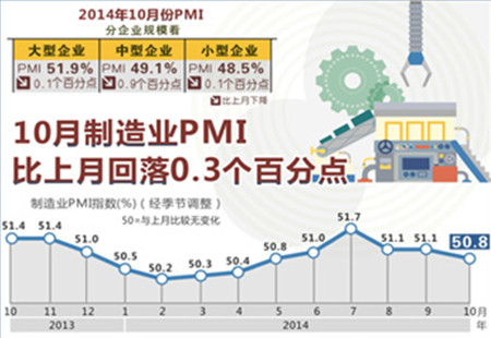 10月官方PMI輕微回落 仍在榮枯線之上由國家統計局與中國物流與采購聯合會最新發布數據顯示,我國10月份PMI(制造業采購經理指數)為50.8%,較上月輕微回落0.3個百分點,但繼續位于50%的榮枯線以上,表明在新常態下我國制造業總體上繼續保持平穩運行態勢。 [詳細]