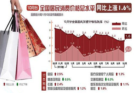 10月CPI微漲PPI再跌 工業通縮風險顯現11月10日,國家統計局發布的數據顯示,自9月份全國居民消費價格總水平(CPI)回落至2%以下后,10月CPI持穩在1.6%,再創近4年來的新低。在工業生產者出廠價格指數(PPI)方面,10月不僅延續超過30個月的負增長... [詳細]