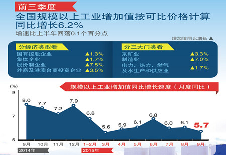 9月份規模以上工業增加值增長5.7%2015年9月份,規模以上工業增加值同比實際增長5.7%(以下增加值增速均為扣除價格因素的實際增長率),比8月份回落0.4個百分點。從環比看,9月份,規模以上工業增加值比上月增長0.38%。1-9月份... [詳細]
