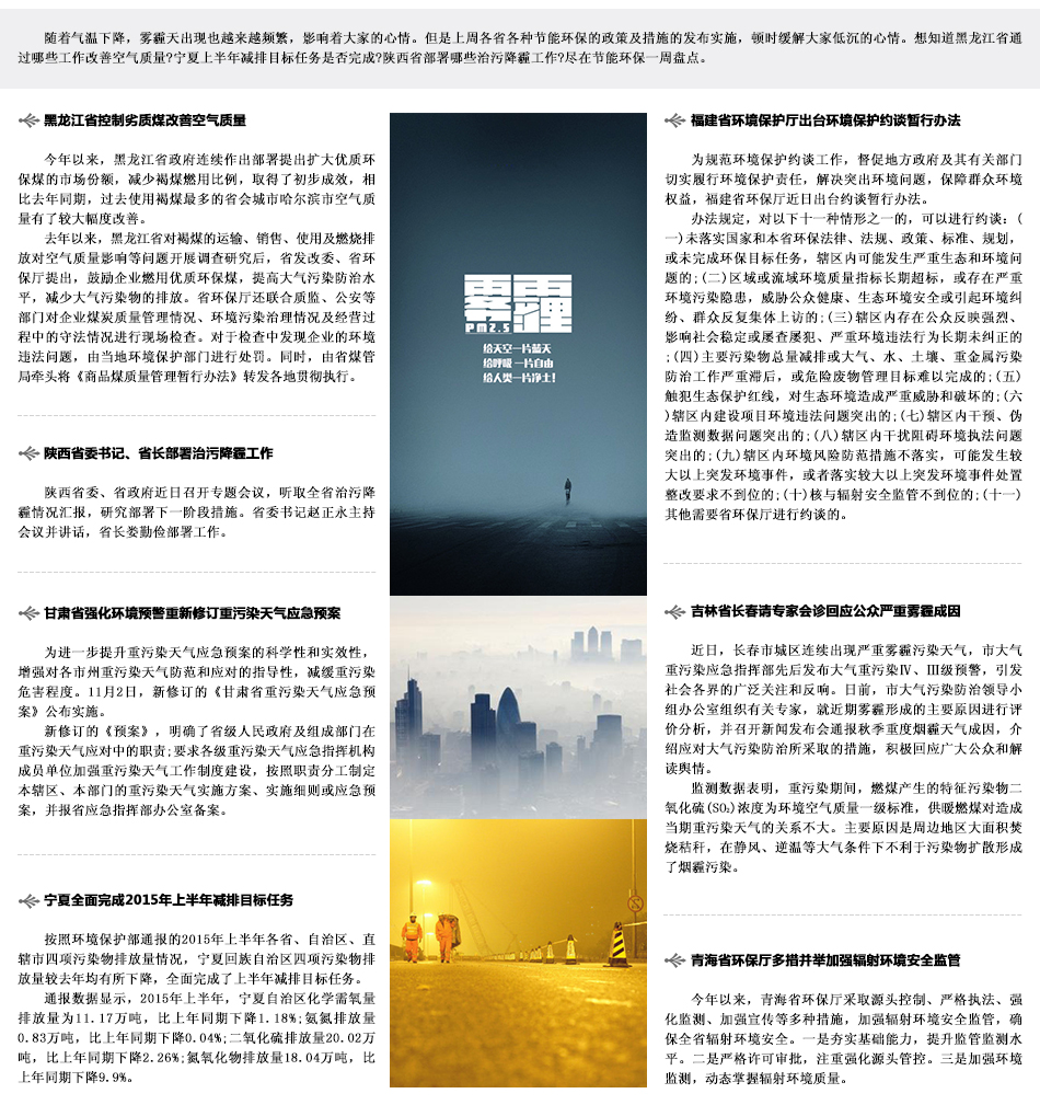 目前,東北地區(qū)已進(jìn)入冬季供暖季,遼寧省大范圍霧霾持續(xù)近3日仍沒有消散。遼寧省環(huán)保廳相關(guān)負(fù)責(zé)人9日上午介紹,此次霧霾是2014年遼寧全面實施新空氣質(zhì)量標(biāo)準(zhǔn)以來,面... [詳細(xì)]
