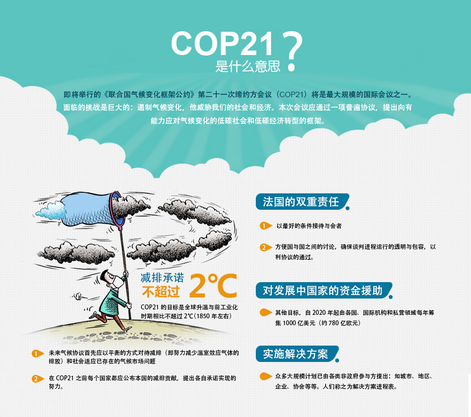 還有一個星期,《聯(lián)合國氣候變化框架公約》(以下簡稱“公約”)第21次締約方會議(即巴黎氣候變化大會)將在巴黎拉開帷幕。大會尚未召開,國際社會已經(jīng)廣泛關注。大會何以如此扣人心弦?將有哪些焦點議題?目前準... [詳細]