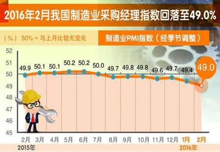 統計局:2月制造業PMI為49.0% 創逾三年新低3月1日,國家統計局服務業調查中心和中國物流與采購聯合會發布的數據顯示,2月制造業采購經理人指數(PMI)回落至49.0,為連續第7個月處于榮枯線下方,低于預期的49.4。前一個月官方制造業PMI為49.4,創下3年多新... [詳細]